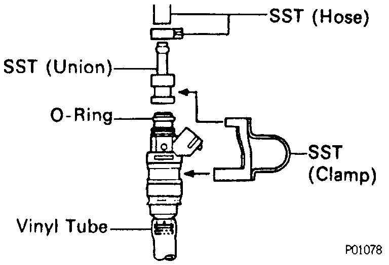 HINT: Install a suitable vinyl hose onto the injector to prevent gasoline from splashing out.