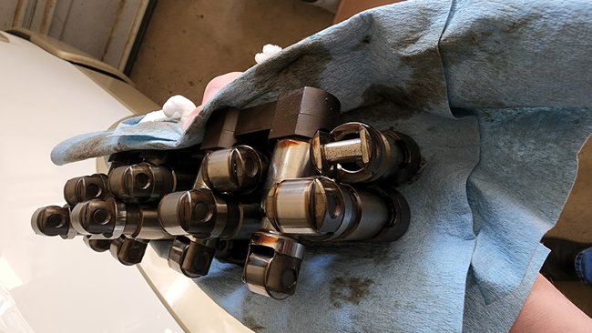 So, the oil needs to be drained. Check to see if there is evidence of any metal fragments in the oil. Now, and this isn't traditional, what I would likely do is this. After draining the oil, I would replace the drain plug. Then, I would flush the engine with kerosene or diesel fuel by installing approximately five quarts of kerosene, allowing it to sit a few minutes, and then drain it.
