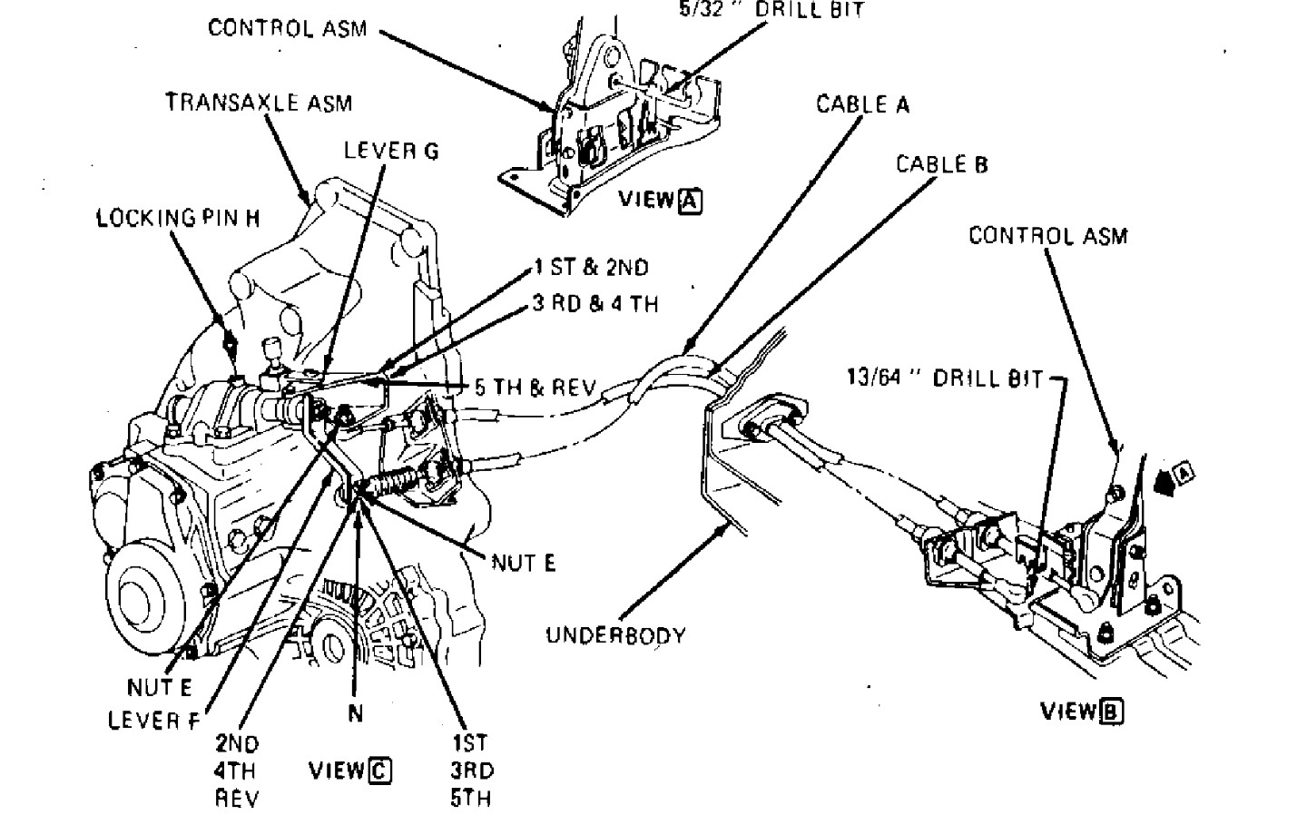 Those are a push pull system. When you move the shifter lever inside to the right and left the cable on the transmission end pulls the internal shift fork selector up and down with the shift selector shaft linkage. Then when you move the lever front or back, it rotates the top lever outside the transmission. The internal selector then moves and slides the correct shift yoke in the transmission to select the gear you wanted. So say you wanted 1st gear. You move the stick inside and the cable will move the internal selector into the notch on the first gear yoke. Then when you put the stick into 1st gear it slides the yoke and moves the sliding gear in the transmission. There are some adjustments but the common issue is the bushings getting worn and the extra play from that means the transmission doesn't fully engage. That is when you replace the bushings or the entire cable assemblies.