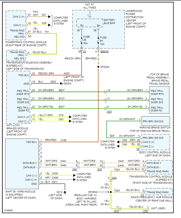 Here are the wiring diagrams for the shift interlock so you can see how it works and I have included how to put the truck in neutral so you can move it if necessary. Let's run the codes to see what comes up with e CAN scan, you can get a CAN scanner (Controller Area Network) which will work on most cars from Amazon.