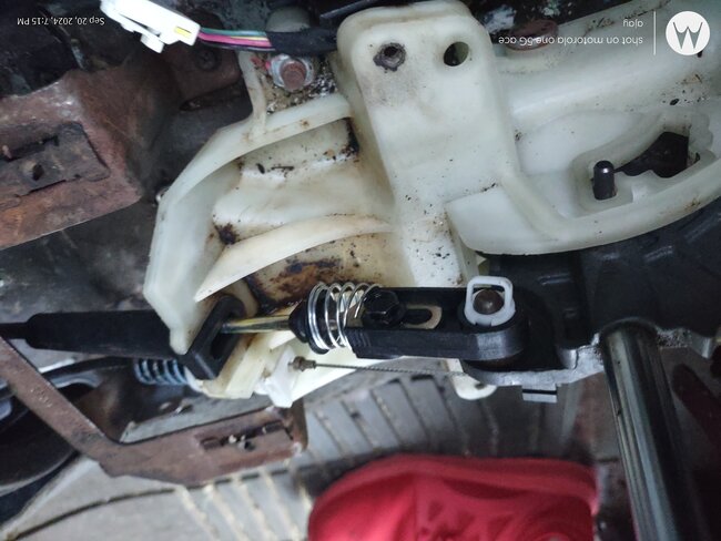 I bought the vehicle listed above about 2 or 3 years ago and I was told that the bushing was going bad I needed to be replaced, but I never seen a problem, so I didn't want to mess with it until then. Well, the last few months I noticed my car was not going all the way into park so sometimes I would have to start it in neutral if it wouldn't go into Park well then yesterday when I was pulling up at home I hit the break put it in park and when I took my foot off the break my car was still rolling so I heard up and hit the break and when I looked at the dash I noticed that it said my car was in third or three or whatever it is right past drive so my lover was all the way in the park position though so I push the break and I went to go pull the lever back to where the indicator was saying it was you know and then maybe pushed forward I couldn't move my shifter so when we took it apart at the console and was going to replace the bushing it's still not shifting right and it's my key is now stuck in the ignition to where it wasn't but when you look at the cable that's going out the floorboard it seems to be bent and the coating around it or something is freed out so I'm trying to figure out is there a way of fixing that is it supposed to be bent or do I have to replace this cable also the spring doesn't look right after replacing this bushing can you tell me if that looks right to you.