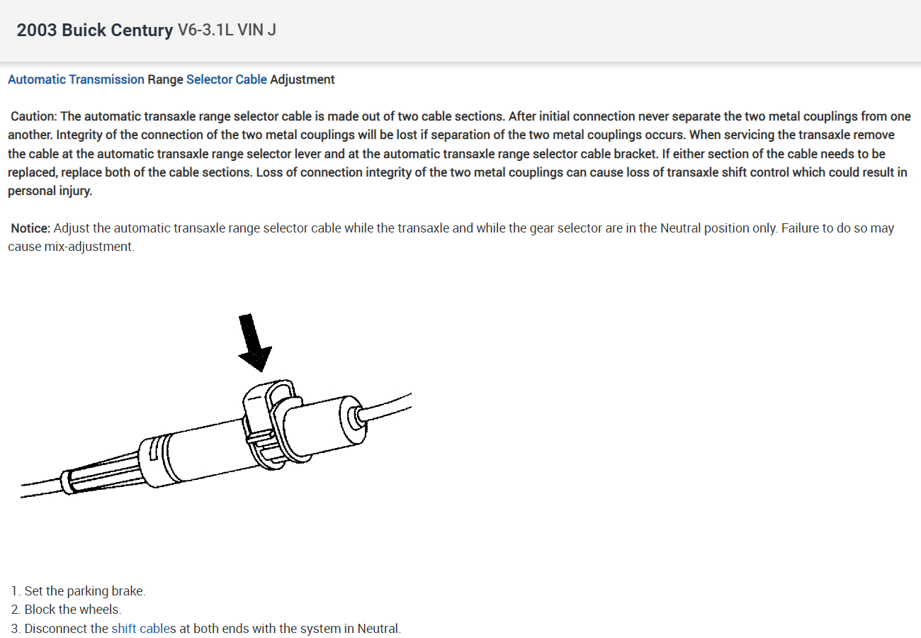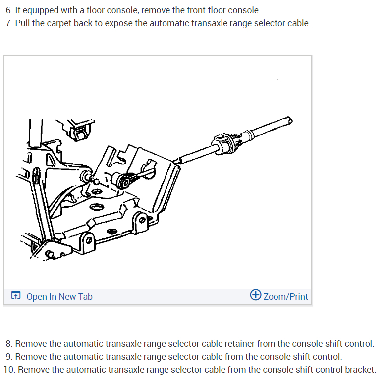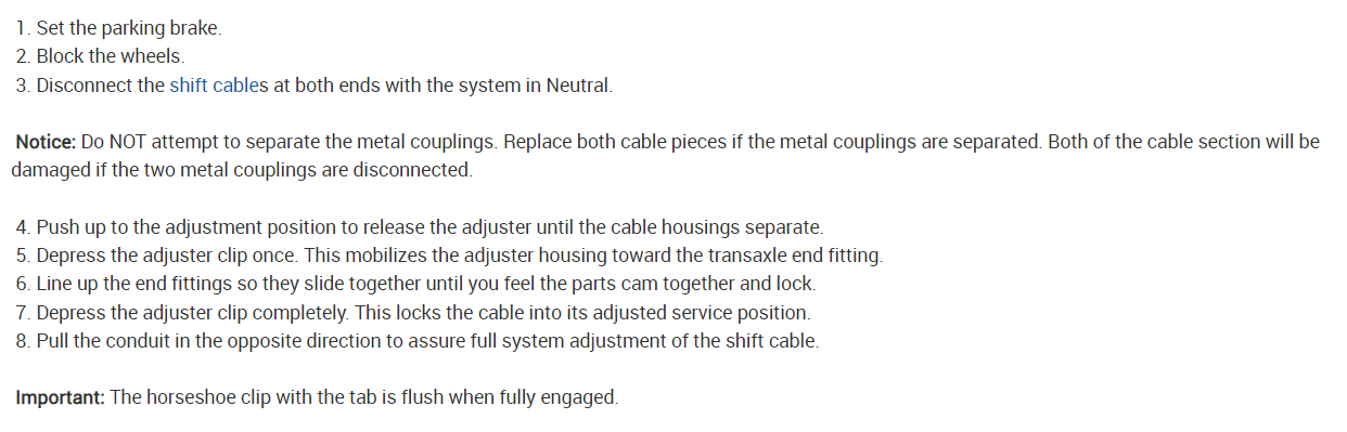 Sure, here are the instructions for the floor and column mounted shifter cable replacement and I included how to adjust it as well. Check out the images (below). Let us know if you need anything else.