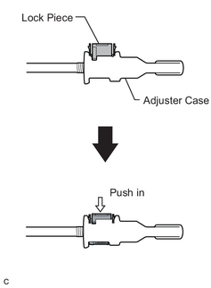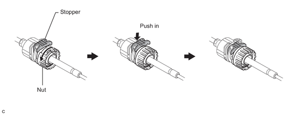 Turn the nut of the transmission control cable 180° counterclockwise. While holding the nut in place, push in the stopper until the stopper clicks twice.
