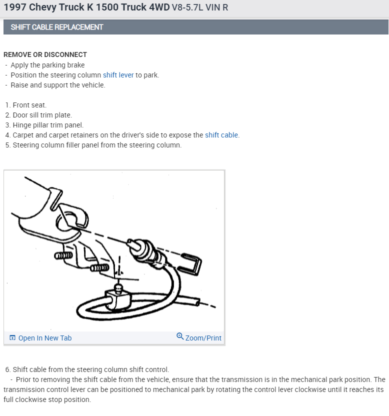 It acts like the shifting cable unhooked at the steering wheel because I know it didn't at the transmission.
