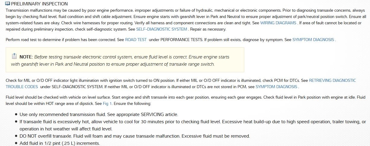 Personally, I would bet that the transmission is slipping and needs to be rebuilt or replaced. I am attaching Prodemand's information concerning checking the transmission fluid. Go ahead and do that. Maybe we will get lucky and the fluid level will be a little low.