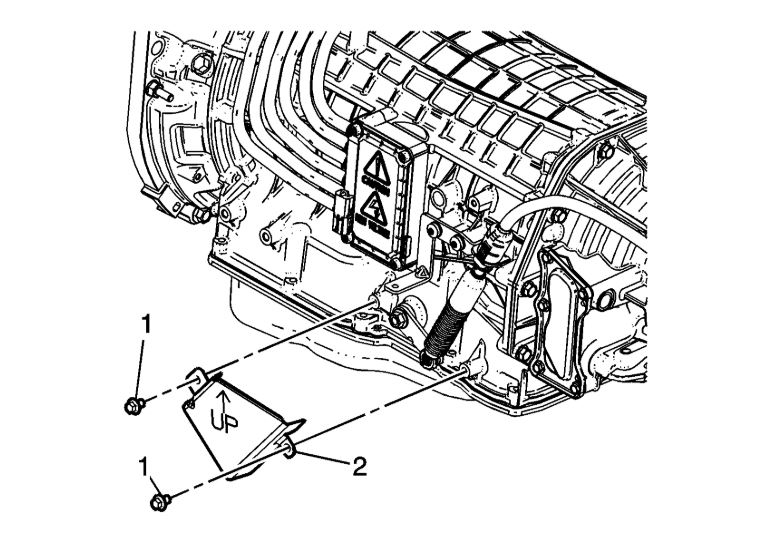 14. Remove the range selector lever cable heat shield (2).
