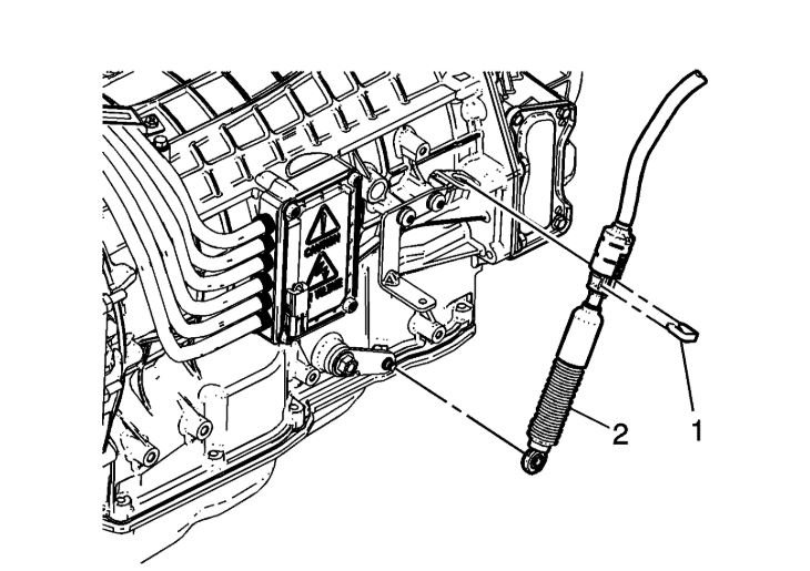 16. Disconnect the range selector lever cable (2) from the range select lever.