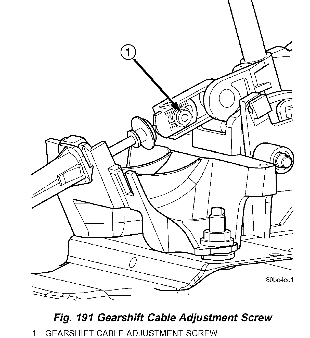 b. Loosen shift cable adjustment screw (Fig. 191).