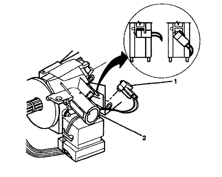 7. Remove the passkey connector from the ignition lock cylinder case (2).