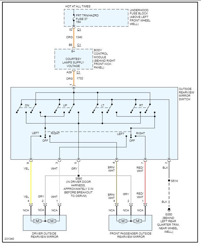 I would start by checking the fuse # 37 in the under-hood fuse panel here is a guide to help and the mirror wiring diagrams so you can see how the system works.