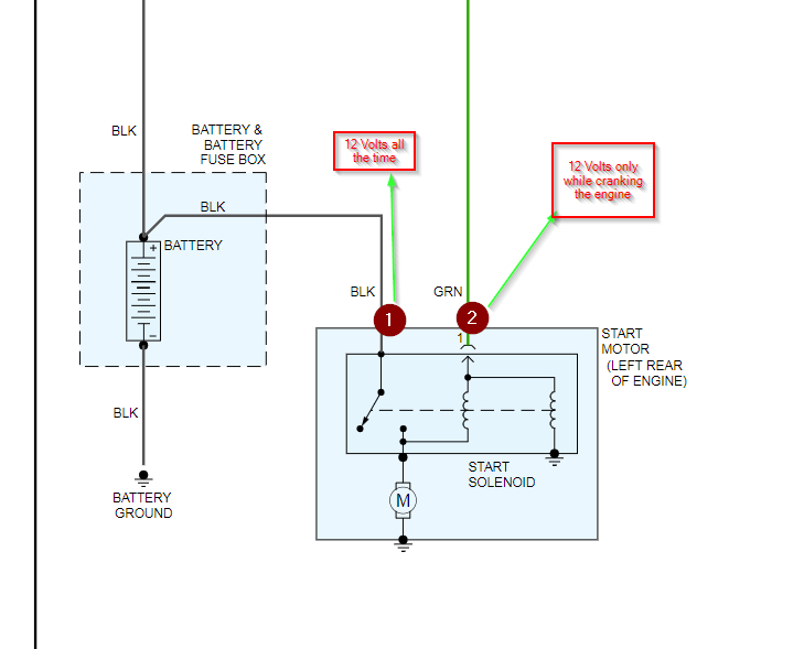 Also, if you are not using a volt meter, then we need to use one. A test light will tell you if you have voltage but you need 12 volts to engage the starter. So a test light will light up but you don't know if that is 12 volts or 8 volts.