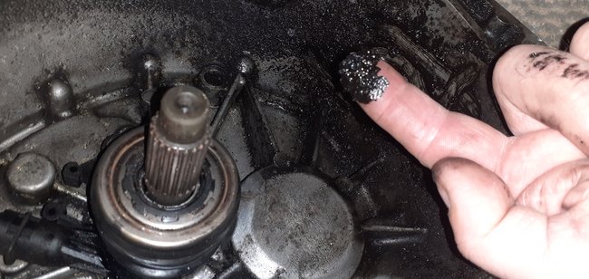 No, I just woke up having a bad night with my back. It's 3:30 am Sunday night/Monday morning here so the dealer won't be open for about another 6 hours. I've no lift or fancy equipment, so I'm doing it outside. I have to clean it all up and collect the new parts in the morning. It is like dirt mixed with oil but where would the dirt come from the bell housing is pretty well sealed, isn't it?
