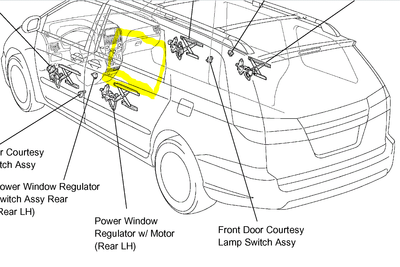 Do you have an schematic of the sliding doors? Just want to check out the mechanism on the glass window function. The window goes down but towards the bottom it makes a cracking noise. Then I just roll it right up before anything "breaks".