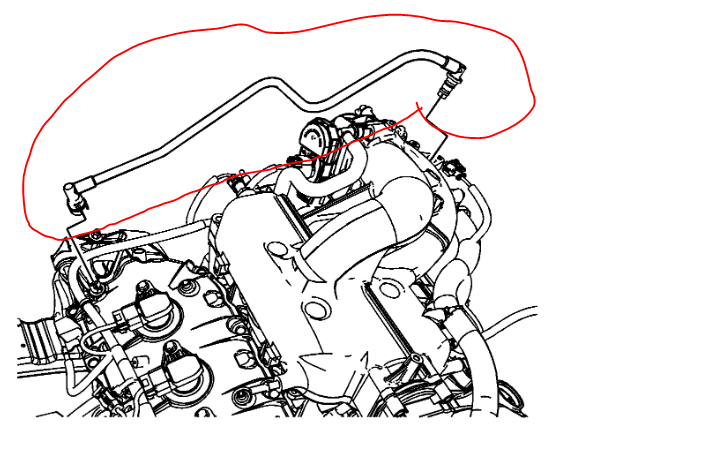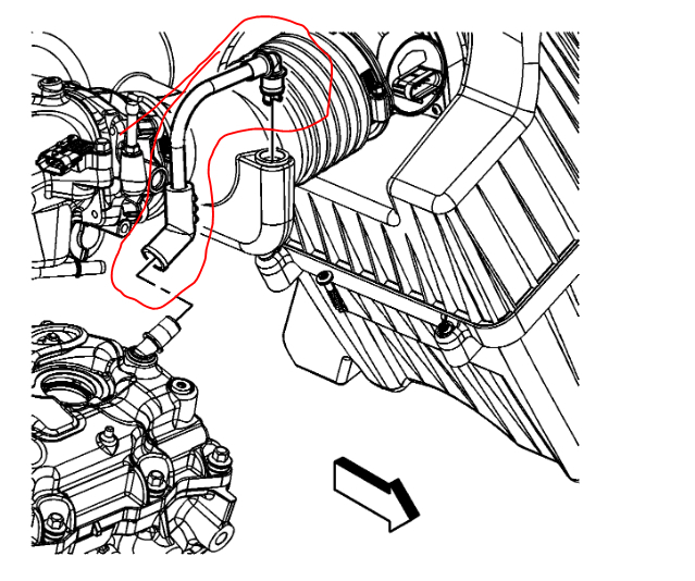 Next, if the PCV hose is plugged, it can cause excessive condensation in the engine simply because it can't breathe. On this vehicle, there are two PCV hoses. The rear one runs from a valve cover to the intake manifold. See pic 1 below.