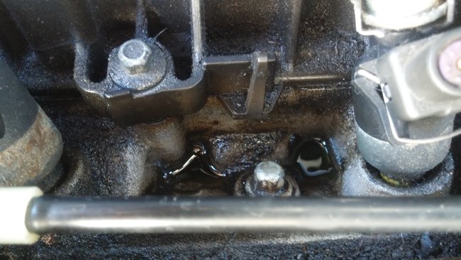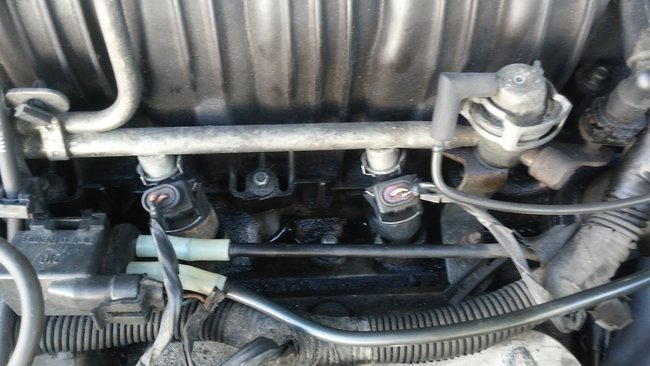 I have noticed that there is what looks/seems to be small amounts of oil, on the engine just below the upper intake manifold gasket, and it is sitting in the little pocket crevices, I usually get a rag and use my pinky to absorb it. Help! But, the car starts right up though, I usually have to turn on A/C fans to keep temperature stable.