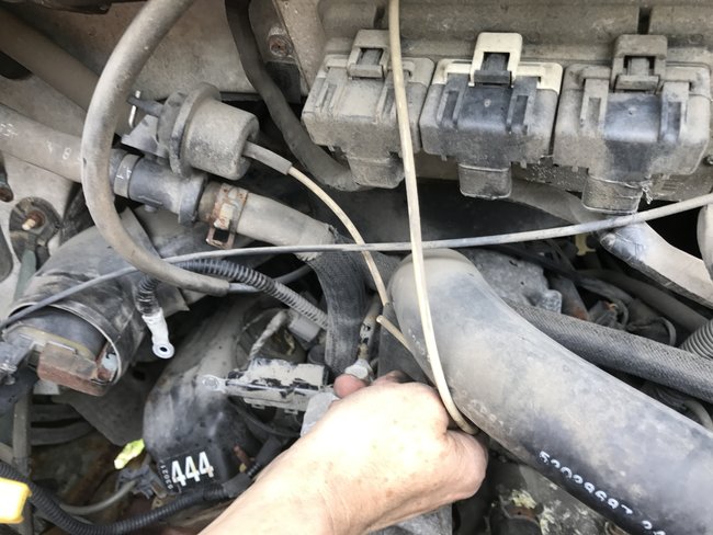 That is a vacuum line to the heat control valve to the upper left. The easiest fix is a connector that you can get at most parts stores. It is basically a short piece of rubber tubing that is a tight fit over the plastic. If you have some rubber vacuum line it will work as well as long as it is a tight fit.