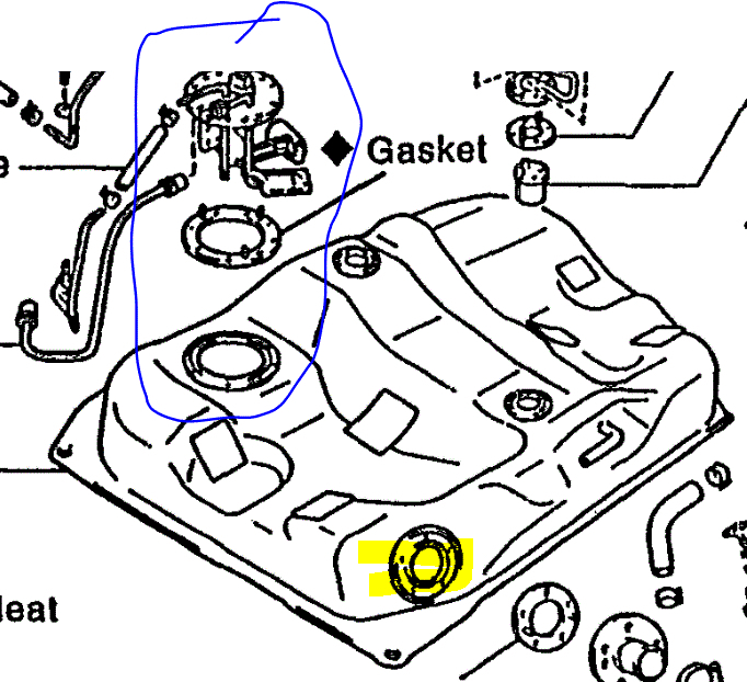 If you look at pic 1, I circled where the pump mounts and highlighted where the filler tube enters the tank. Crawl under the vehicle and inspect around where the filler tube enters for evidence of a leak. Also, check the filler itself for possible rust issues