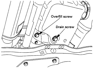 Before starting, add transmission fluid until it flows out over the overfill screw opening.