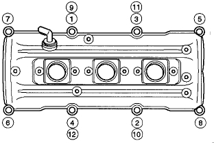 The cylinder head cover must be installed within 5 minutes after sealant application to prevent premature hardening of sealant.
