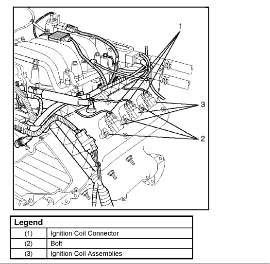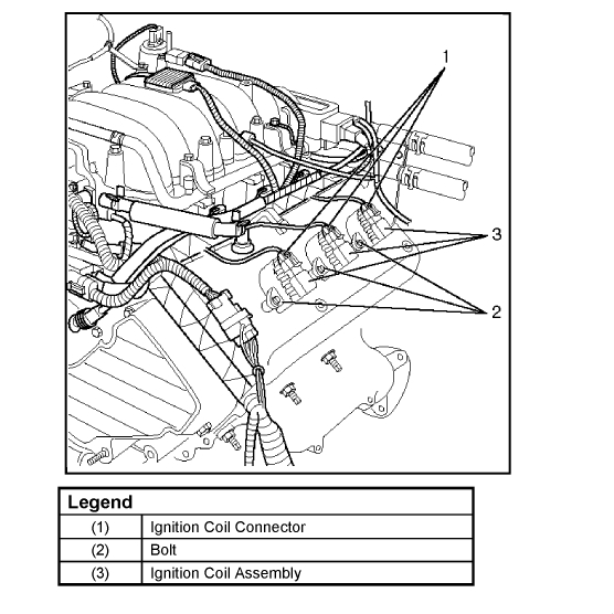 Connect ignition coil connector and tighten ignition coil fixing bolts to specified torque. Torque: 4 Nm (35 inch lbs.)
