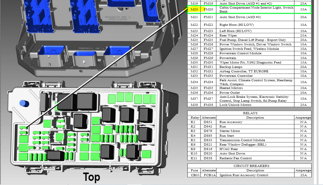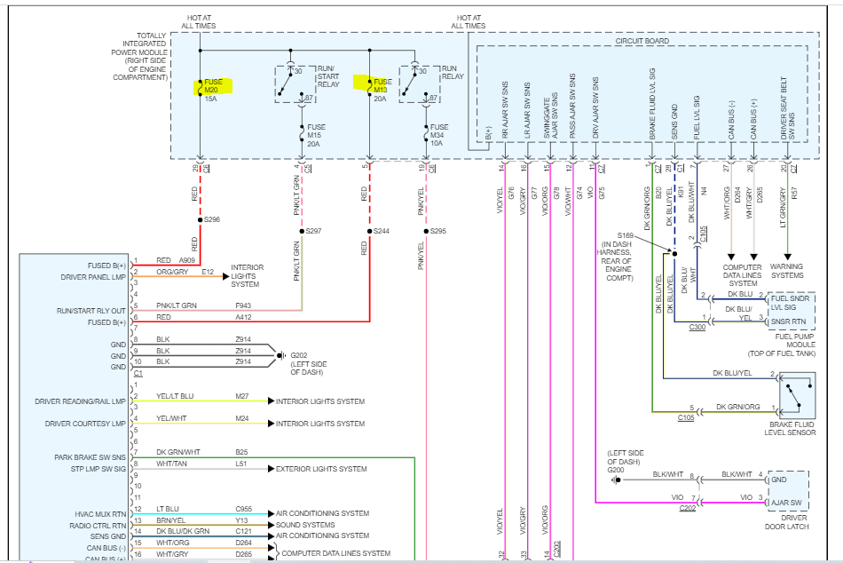 Now, the cluster issue is different. I need you to start by checking fuses M13 and M20 in the under-hood fuse box/totally integrated power module (TIPM).