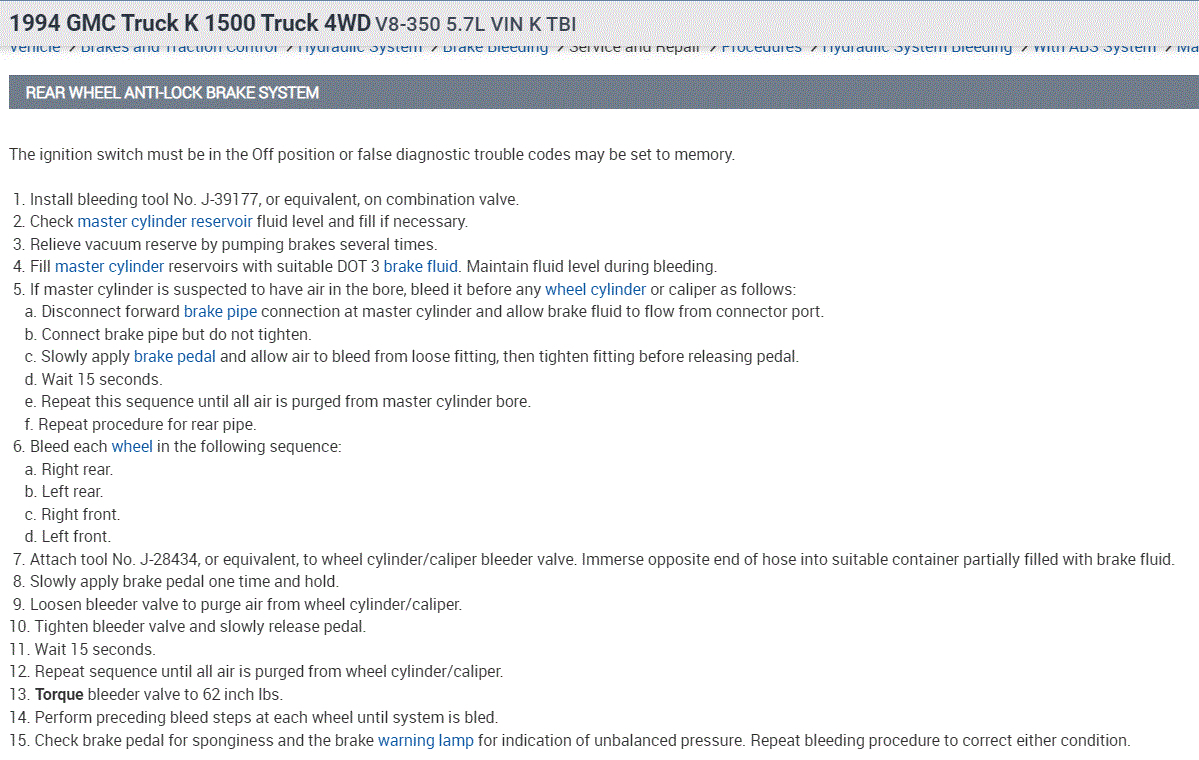 Well, one thing I'm sure of it has all new fluid, I ran four quarts through it in all and just keep getting air and air out of all the bleeders. As far as ABS it is gone anyways took it off, and I could not drive it and stump on pedal and lock wheels. That's what I'm saying I can't even slide wheels on a gravel road. Really! I have no brakes even when I do get a little pedal. The shop I take it too is small shop in small town and they do me right, they had it two days and three guys work on it on and off only charge me $100.00, and that's when they found combination vale leaking so I took home put new one on.