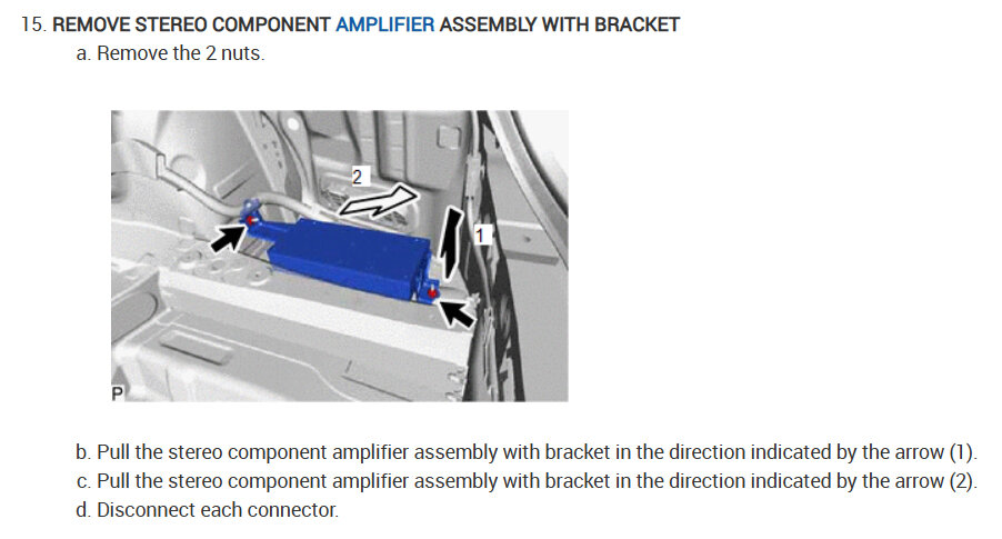 Here is how to remove the head unit and amp so they can be tested. You may want to check for water damage back by the amp while you are back there. Check the connectors for corrosion. Check out the images (below).