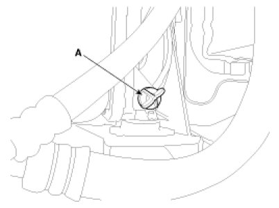 6. Loosen the drain plug (A), and drain the coolant. Remove the radiator cap to speed draining.