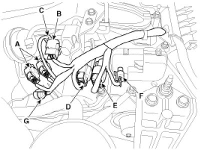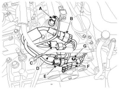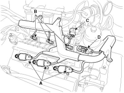 (4)RH ignition coil connector (D).