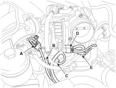 9. Remove the throttle body mounting bolt (D).