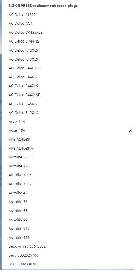 So my truck takes NGK bpr5es style spark plugs. I have one that is completely broken and absolutely nothing import in the yard. What other kind of spark plugs can I use that is equivalent to this one?