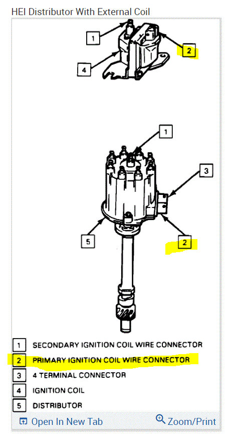 If you haven't already, check for power to the primary circuit wire. See pic below. Note: Some of these had the coil in the distributor cap and others had a remote coil. I highlighted both primary connectors. The wire should be pink in color.