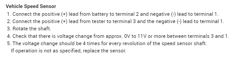 The test for the speedometer is something you will not likely be able to perform at home. Take a look at it. On the other hand, we can test the VSS to see if there are any odd signals or voltage changes when the vehicle isn't moving.
