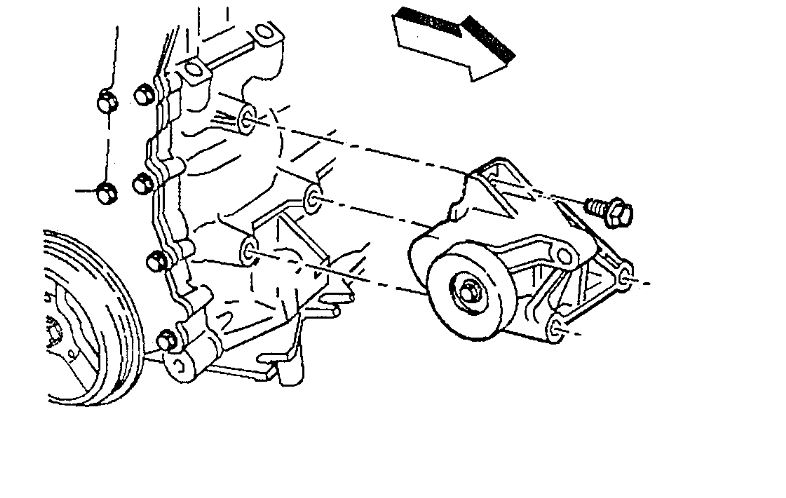 2. Install the tensioner bolts. Tighten the bolts to 50 N.M (37 lb ft).
