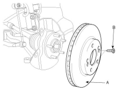 1. Install the brake disc (A) and tighten the screw (B).