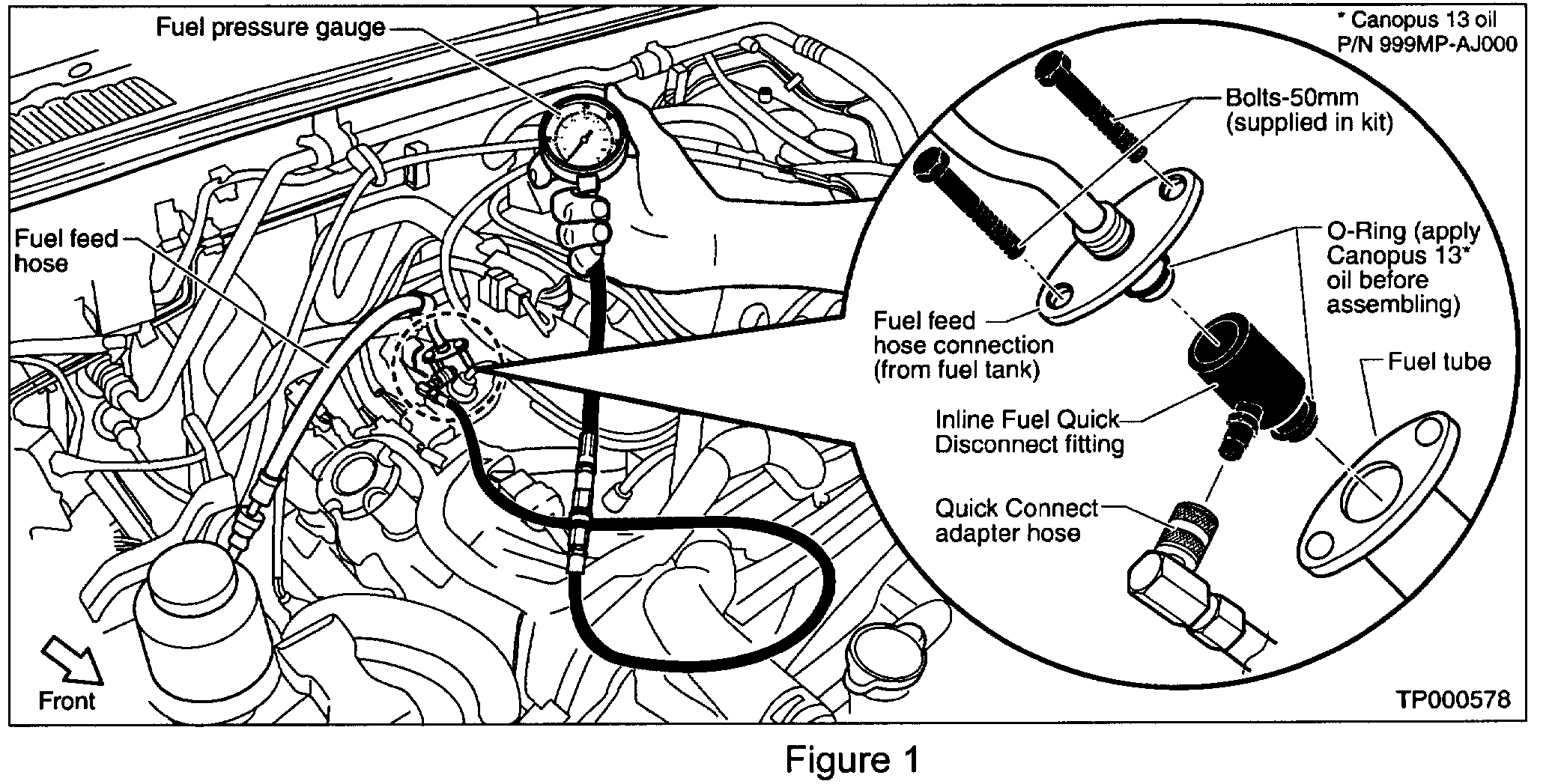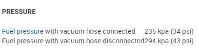 The first picture below contains the fuel pressure specifications required by the manufacturer. The second is where the pressure gauge is connected.
