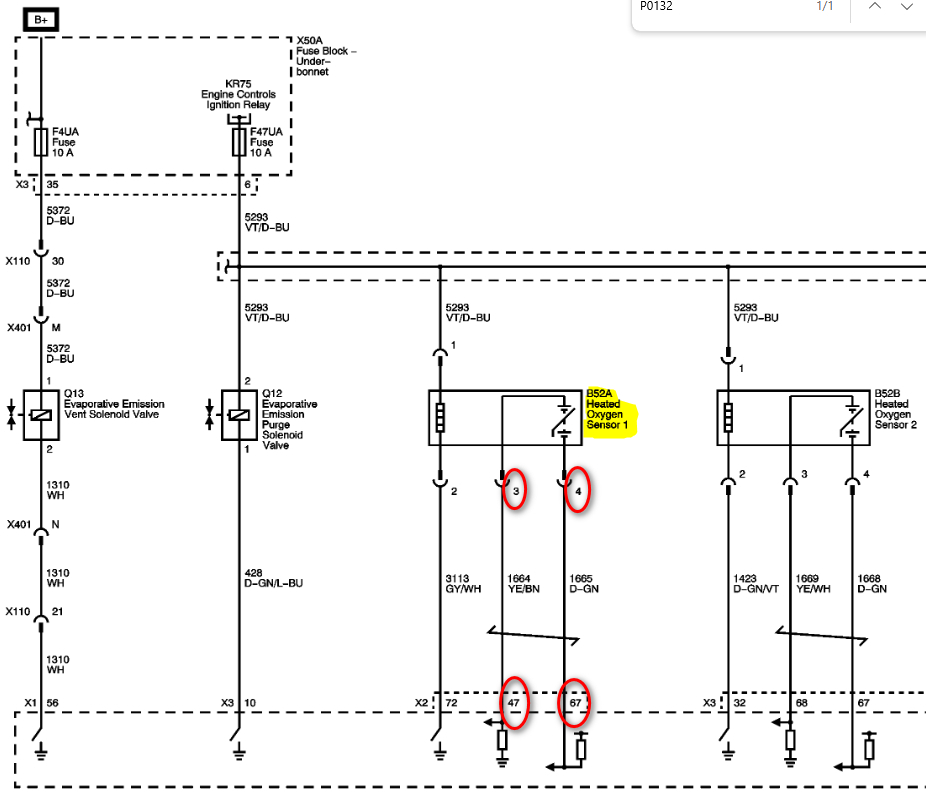 P0132 - HO2S Circuit High Voltage Sensor 1