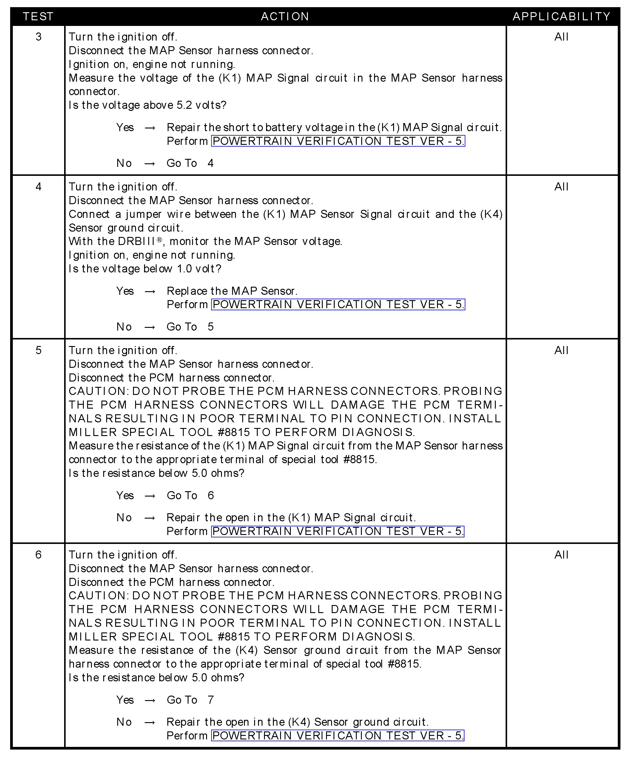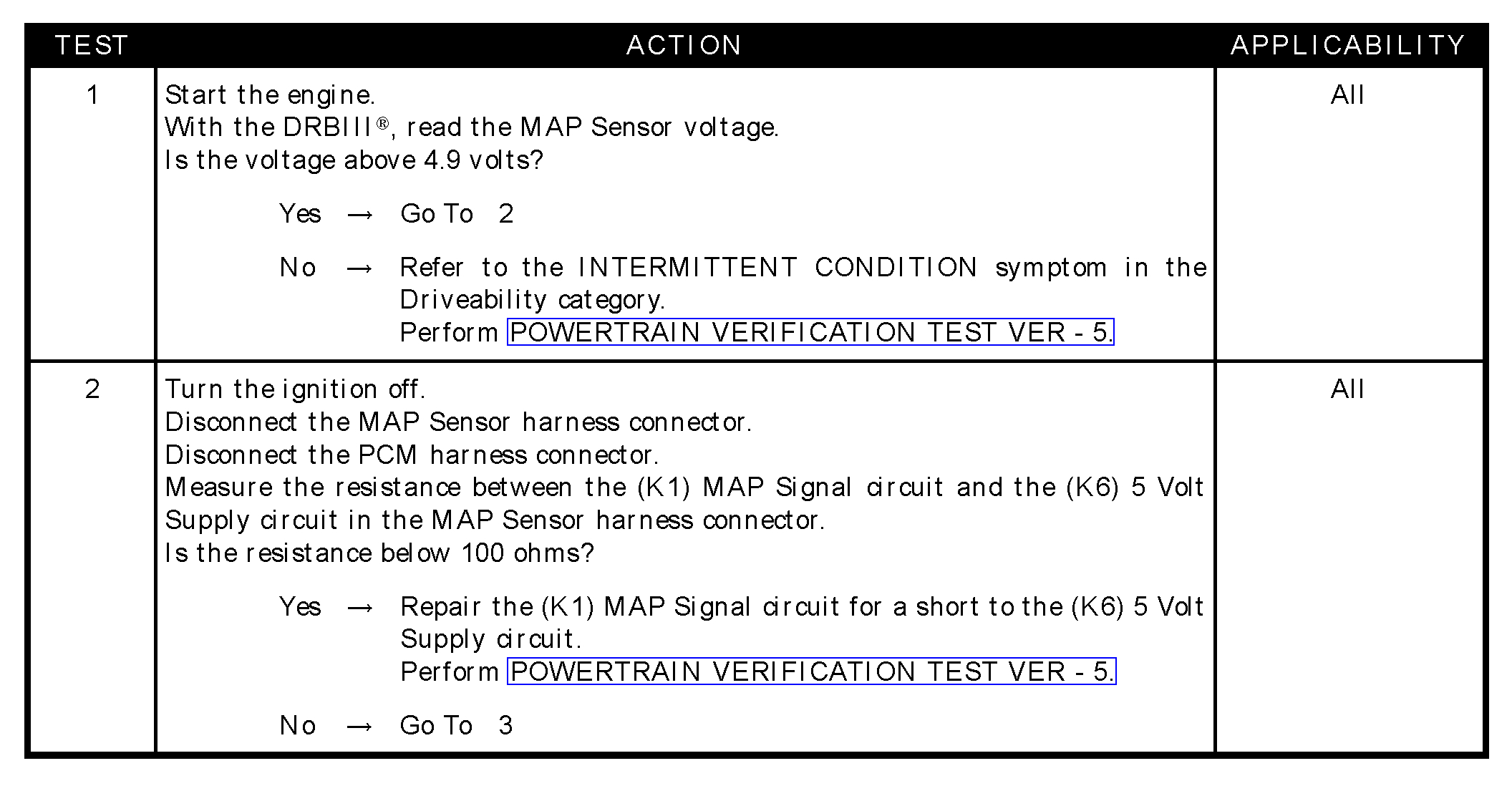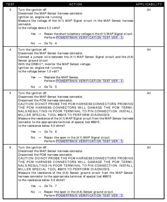 - Resistance to ground in (K1) MAP signal circuit