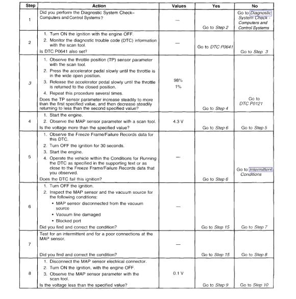 The powertrain control module (PCM) uses the generator turn on signal circuit to control the generator. A high side driver within the PCM allows the PCM to turn the generator ON and OFF. When generator operation is desired, the PCM sends a 5 volt signal to the voltage regulator via the generator turn ON signal circuit. This causes the voltage regulator to begin controlling the generator field circuit. Once the generator is enabled by the PCM, the voltage regulator controls generator output independently of the PCM. Under certain operating conditions, the PCM can turn OFF the generator by turning OFF the 5 voltsignal on the generator turn ON signal circuit. The PCM has fault detection circuitry which monitors the state of the generator turn ON signal circuit. If the fault detection circuit senses a voltage other than what is expected, this DTC will set. The voltage regulator also contains fault detection circuitry. If the regulator detects a problem, the regulator will ground the generator turn ON signal circuit, pulling the voltage low. This also causes the PCM to set the DTC.