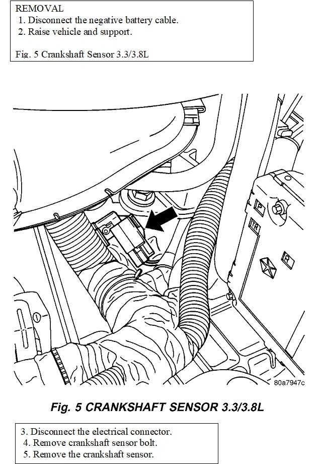 In this case, since this has been such a common problem, you might consider just replacing the crankshaft position sensor since it costs less than a trip to the repair shop. On older engines there was a very simple but important procedure to set the depth of the sensor. Yours is fixed with its mounting ear, so you just push the sensor in and bolt it snug. You can reach it from on top. It's near the driver's side of the engine, above the transmission.