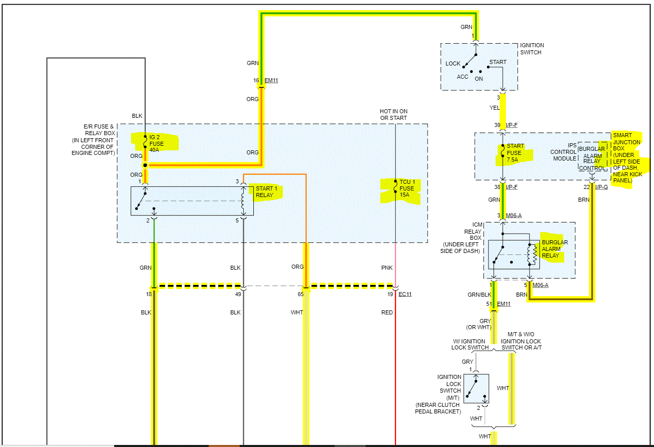 I attached the wiring schematic below for the starting system for your reference. I'm not sure if it has a smart key or not, so I went with "not". If that's wrong, let me know.