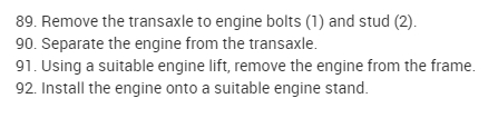 Because this has a V8 engine, most everything needs to be disconnected or removed. Also, the engine and transmission will be removed as a unit through the bottom of the engine compartment. As a result, the cradle or framing under the engine is removed with the trans and engine still attached to it.