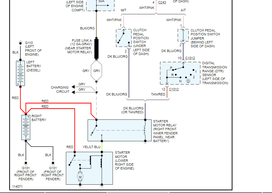 This could be a problem with the ground straps coming from the engine to the body and the straps from the body to the negative battery terminal. There could be a loose connection and/or corrosion on the connections, and/or a damaged strap that is not allowing the current to return to the battery. In the diagrams down below I have included guides on how to inspect ground connections and a guide for measuring damaged parts of an electrical circuit, called voltage drop. You will need to use a Digital Multi-meter[DMM] for the later tests, so here is a link describing how to do that below, if needed: