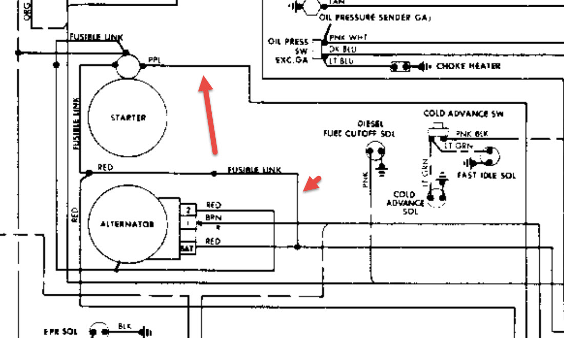 Hi, My older K5 full size diesel blazer has a problem with the starting system. Solenoid doesn't click to initiate the starter, and the bottom fuse (5 amp) ignition? Doesn't have power to either side, and with the key on, no power to the neutral safety switch at the bottom of the steering column. I've replaced the ignition switch, and cleaned the terminals at the (center) of the firewall. Last time I replaced the starter with a Bosch re-manufactured unit, I installed an extra wire to the starter to bypass the ignition switch (for testing purposes only), and when I touch it to the battery, the starter engages, and spins. I tested the fuse links that go to and from the starter and they have 12 volts at each end. The pink wire from the ignition going to the starter, but tested at the firewall bulkhead connector doesn't send power with the ignition in the start position. With the key in the run position, the radio, and dash lights work. The dome, and headlights work as they should. Do you have a wiring diagram for the starting system so I can locate where the power should be coming from to the fuse, and starter? Thank You all!