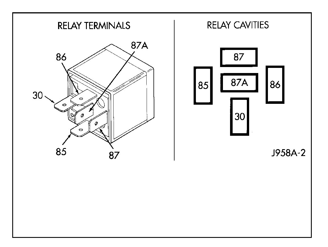 2. The relay normally closed terminal (87A) is connected to terminal 30 in the de-energized position, but is not used for this application. Go to Step 3.