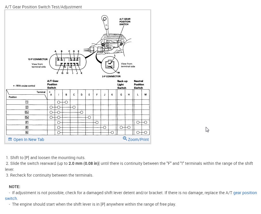 I suspect you have an issue with the shift position switch. Please see the attached.
