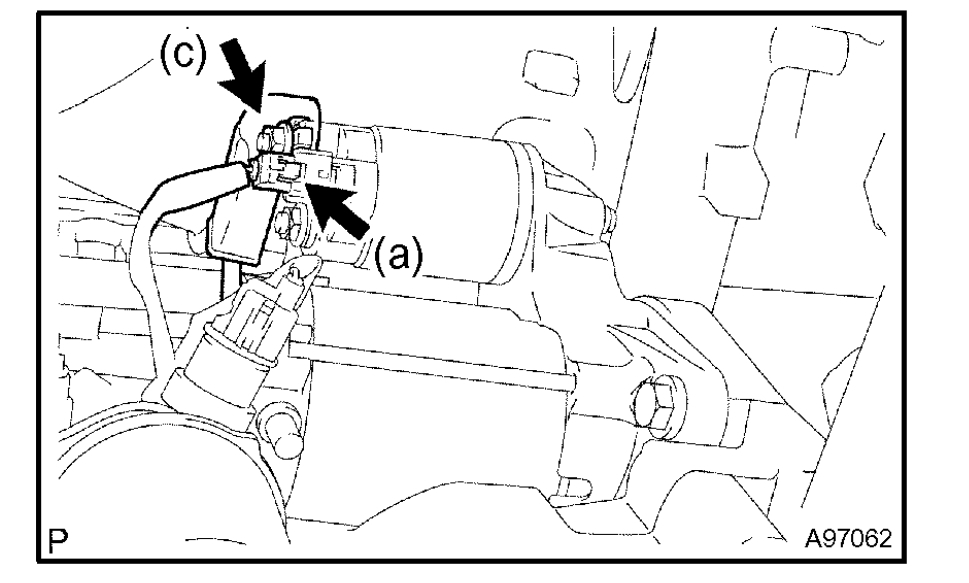 The top bolt you get from the top. You will need to move a harness out of the way and use a 6 inch extension with the 14 mm socket.