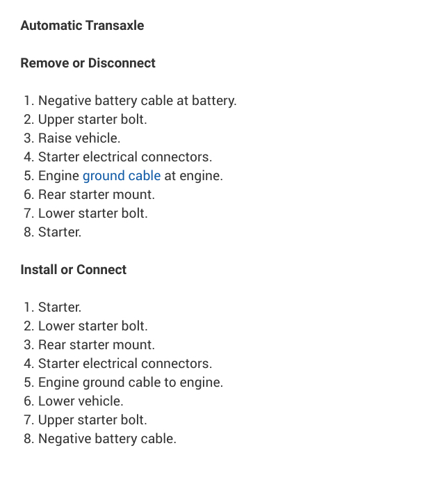 Cannot get starter out. Got the two bolts out, but starter acts like something is holding it up. Does it come out the bottom or top? Or how does it come out?