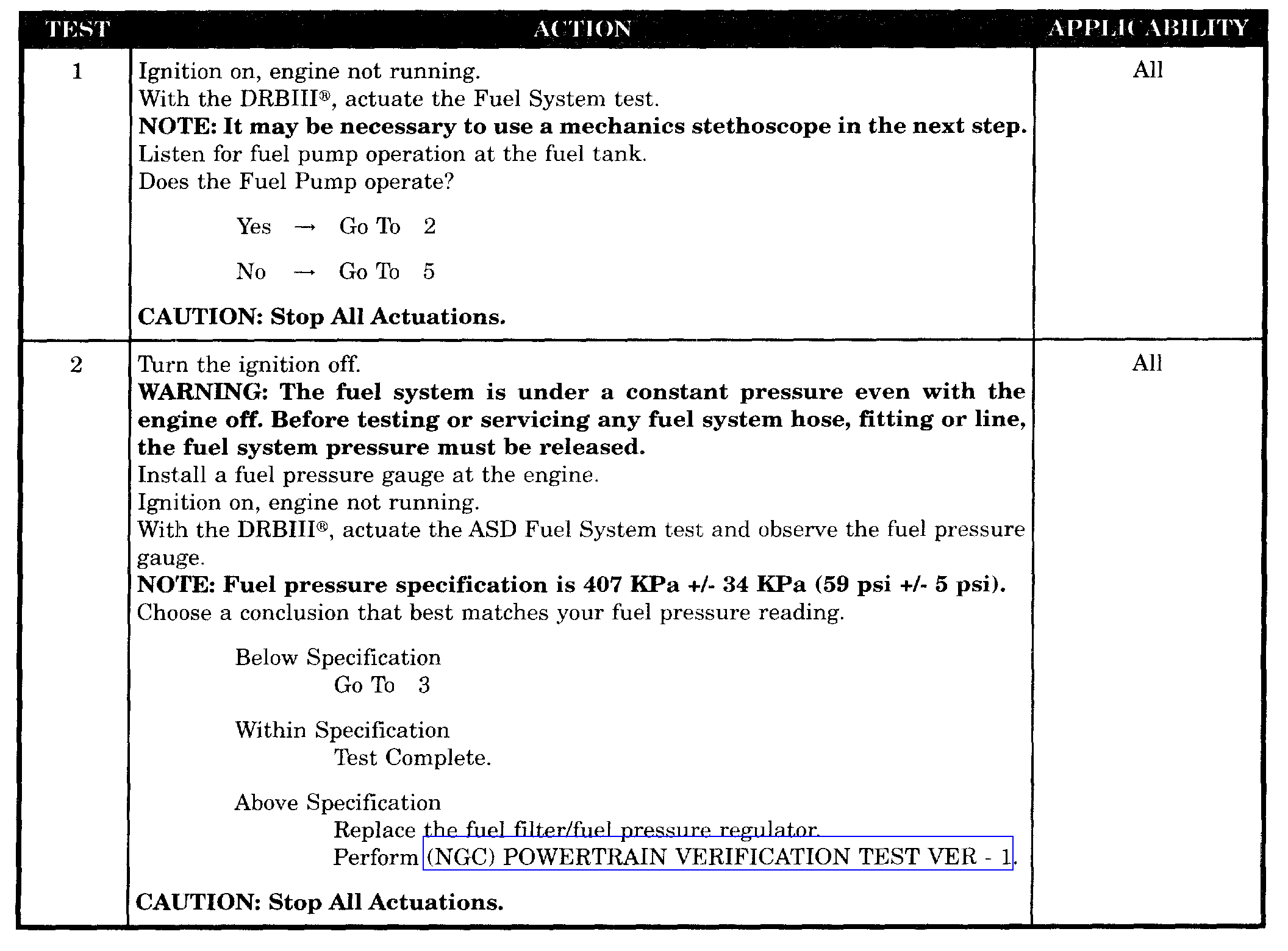 Fuel System Pressure .................... 400 ± 34 kPa (58 ± 2 psi)