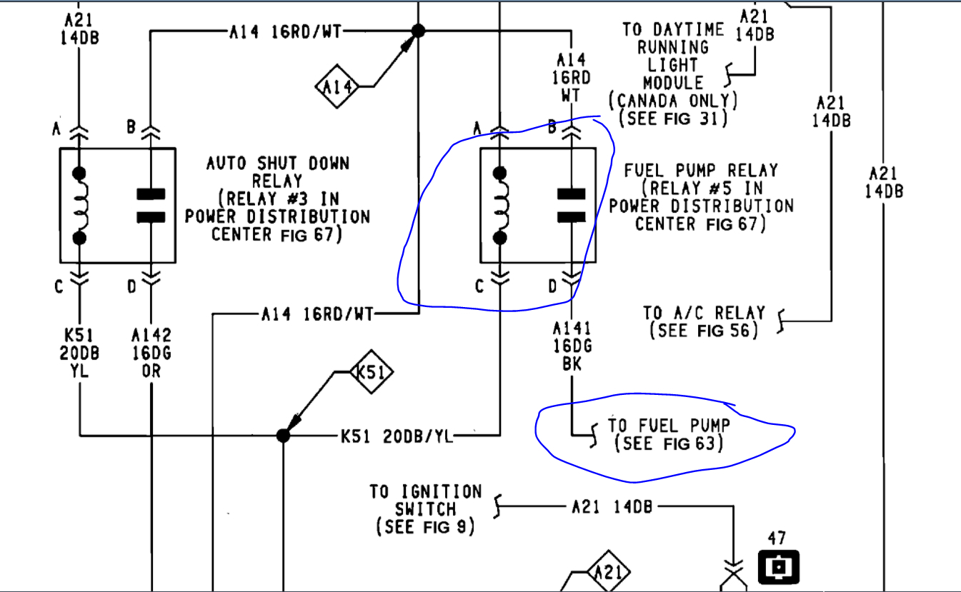 I attached the wiring diagram for you as well as the location of the fuel pump relay.